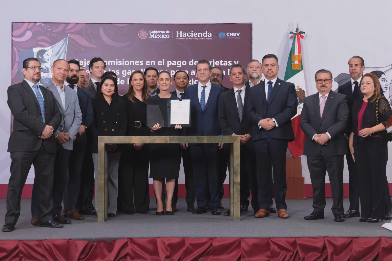 CIUDAD DE MÉXICO.- La presidenta de México, Claudia Sheinbaum Pardo, firmó un acuerdo entre el Gobierno federal, la Asociación de Bancos de México (ABM) y la Asociación de Sociedades de Vales (ASEVAL) para reducir las comisiones aplicadas en pagos de gasolina y diésel realizados con tarjetas bancarias y vales, como parte de una estrategia para contener el precio de los combustibles.